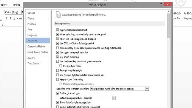 profesional, dan formal, klik logo “Office > Word Options > Advanced >